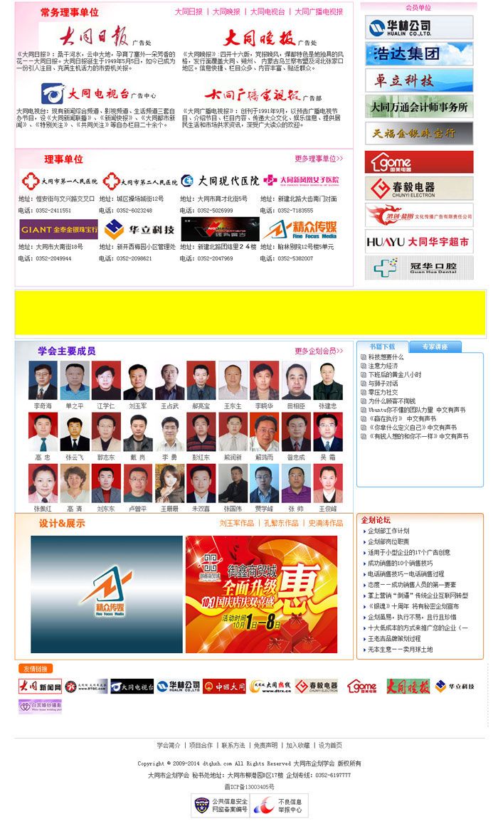 大同市企劃學(xué)會(huì)(DESA)是經(jīng)山西省大同市民政局、社科聯(lián)審批注冊成立的地區(qū)性企劃組織、具有獨(dú)立法人資格的非營利性社會(huì)團(tuán)體。2008年末開始籌備,2009年3月初正式注冊成立。是集合我市主流媒介、企業(yè)經(jīng)營管理者、商業(yè)策劃者、理論研究者等四個(gè)層面為一體的一個(gè)溝通交流、相互