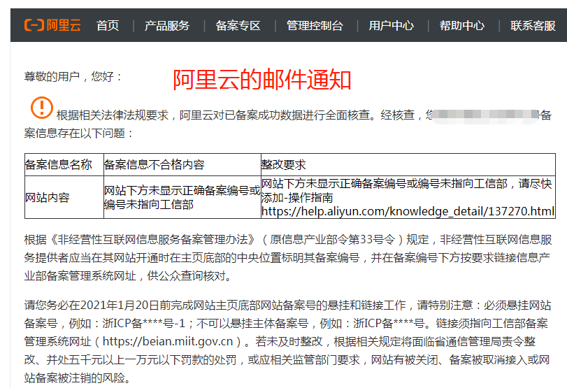 如您檢查網(wǎng)站備案編號(hào)已經(jīng)正確懸掛,鏈接工信部備案管理系統(tǒng)網(wǎng)址正常,請(qǐng)忽略本次的通知即可。