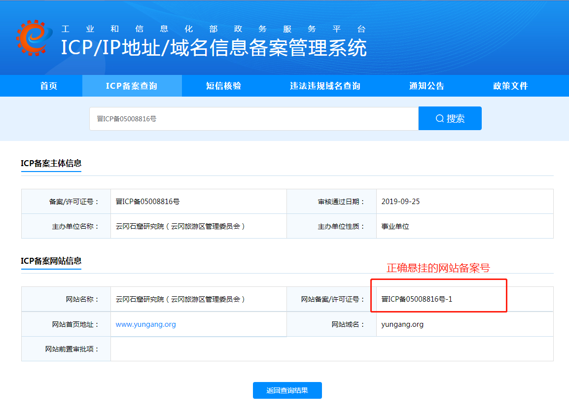 根據(jù)國(guó)家規(guī)定和管理要求,各網(wǎng)站主辦者在2021年1月20日(各接入商要求整改的時(shí)間不完全一致,大體在2021年1月下旬)前完成網(wǎng)站主頁底部網(wǎng)站備案號(hào)的懸掛和鏈接工作,特別提示:必須懸掛網(wǎng)站備案號(hào),例如:晉ICP備****號(hào)-1;不可以懸掛主體備案號(hào),例如:晉ICP備****號(hào)。鏈接須指向工信部備案管理系統(tǒng)網(wǎng)址(https://beian.miit.gov.cn)。若未及時(shí)整改,根據(jù)相關(guān)規(guī)定將面臨省通信管理局責(zé)令整改、并處五千元以上一萬元以下罰款的處罰,或應(yīng)相關(guān)監(jiān)管部門要求,網(wǎng)站有被關(guān)閉、備案被取消接入或網(wǎng)站備案被注銷的風(fēng)險(xiǎn)。
