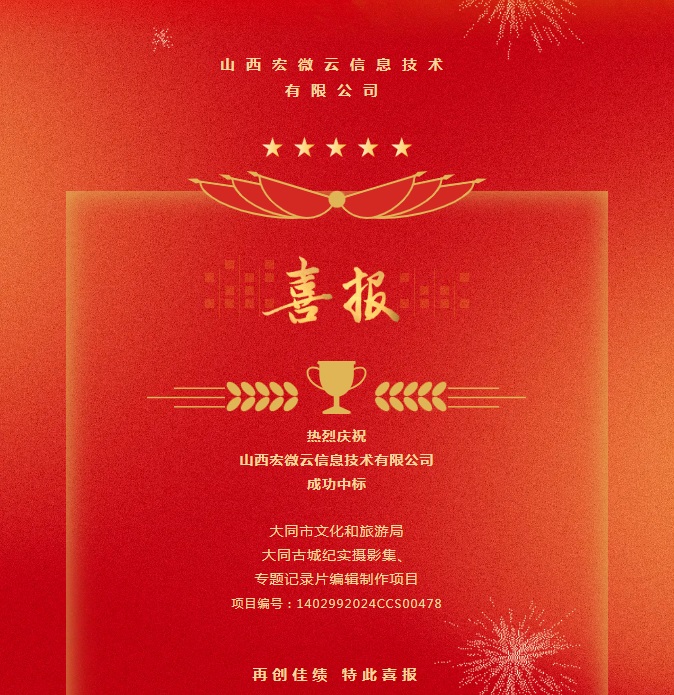 山西宏微云信息技術(shù)有限公司成功中標(biāo)大同市文化和旅游局大同古城紀(jì)實(shí)攝影集、專題記錄片編輯制作項目