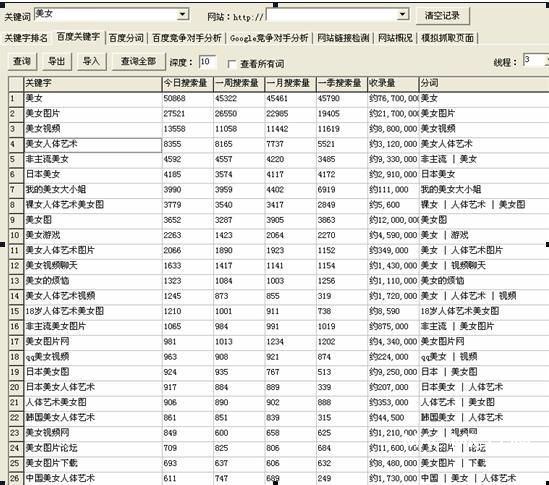 通過圖5大家可以看到,我通過這個(gè)工具輸入關(guān)鍵詞“美女”我就得到了和美女相關(guān)的一些熱門詞的百度指數(shù)情況。假設(shè)我要去做美女圖片站的SEO,就知道除了主關(guān)鍵詞“美女”還有哪些詞有比較大的搜索量,值得我去做SEO。