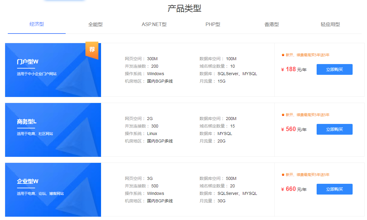 空間/虛擬主機(需每年續(xù)費) 虛擬主機商就太多了,比較大的阿里云、新網等等,其中還有香港主機,美國主機等等,不想備案的可以選擇國外主機,一般企業(yè)站,200m空間足夠,價格在200元左右。
