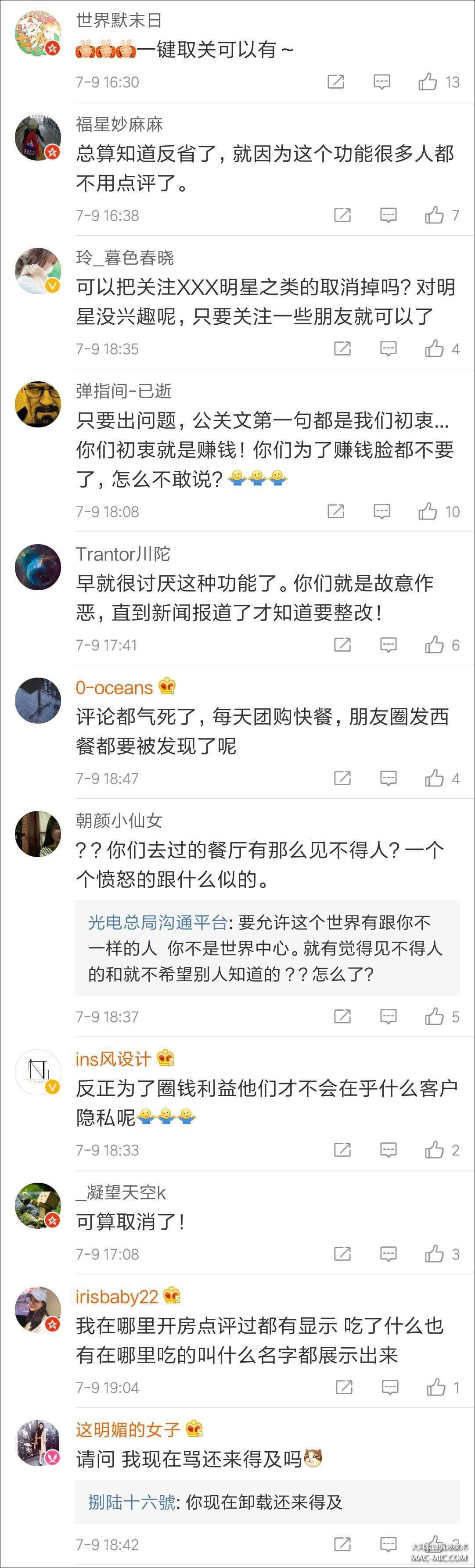 那么問(wèn)題來(lái)了,這五塊錢就能讓用戶出讓隱私了嗎?面對(duì)網(wǎng)友對(duì)隱私的擔(dān)憂,7月9日下午,大眾點(diǎn)評(píng)回應(yīng)稱,新增“一鍵停用第三方全部社交關(guān)系”功能,用戶選擇該功能后,即可一鍵停止關(guān)注微信好友,并取消微信好友對(duì)自己的關(guān)注。